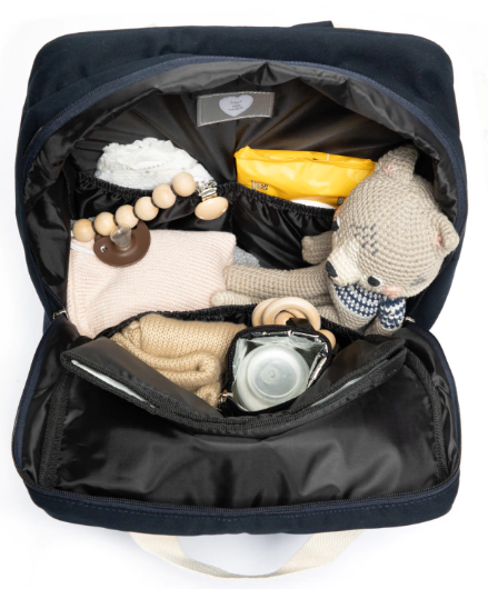 – No posee sistema para colgar en el cochecito.